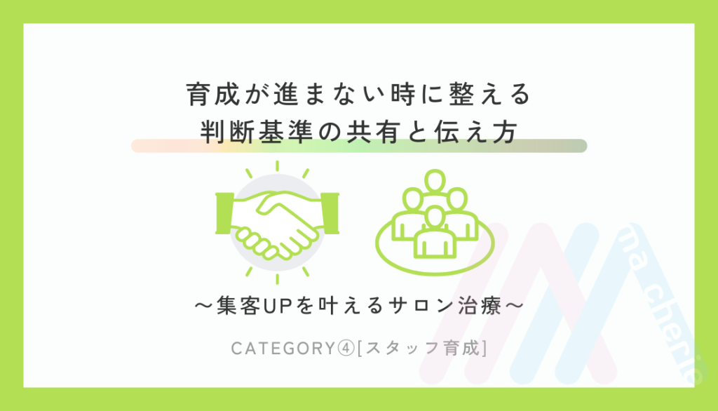 伝えたはずなのになぜか伝わっていない気がする。 そんな瞬間って、ありますよね。 言い方を変える。 ルールを作る。 それでも同じところでつまずく。 でも実は、育成が進みにくい時ってスタッフのやる気がないというより判断基準が揃っていないことが多い... -